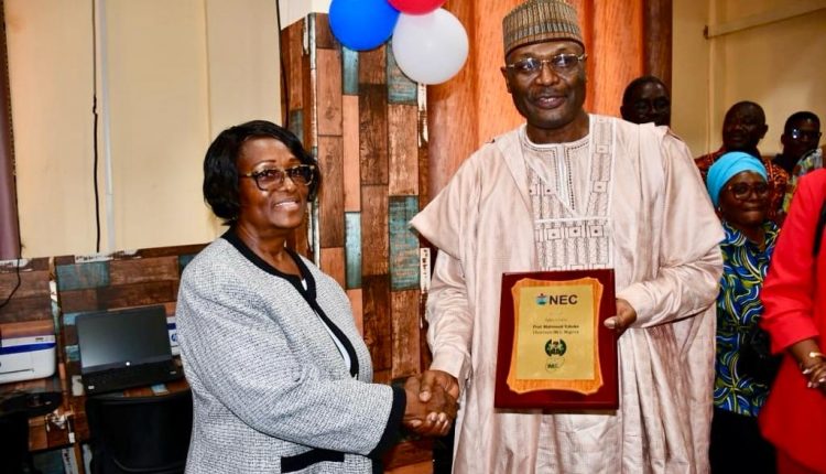 Liberia’s National Elections Commission (NEC)has conferred an honorary tribute to the Chairman of Nigeria’s Independent National Electoral Commission (INEC), Prof. Mahmood Yakubu.