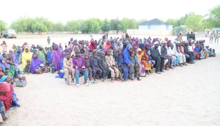 The Nigerian Military has handed over 350 rescued civilians to the Borno State Government on Monday May 20, 2024, at Maimalari Cantonment in Maiduguri.
